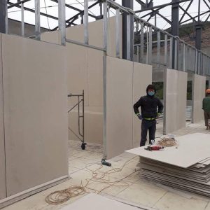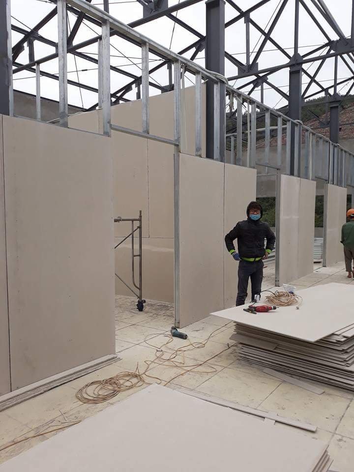 Vách bao thang máy bằng tấm vách cemboard Thái Lan SCG