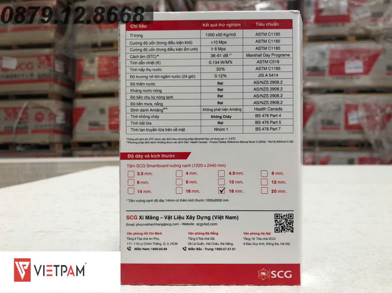 - Thông số kỹ thuật tấm SCG 18mm chính hãng